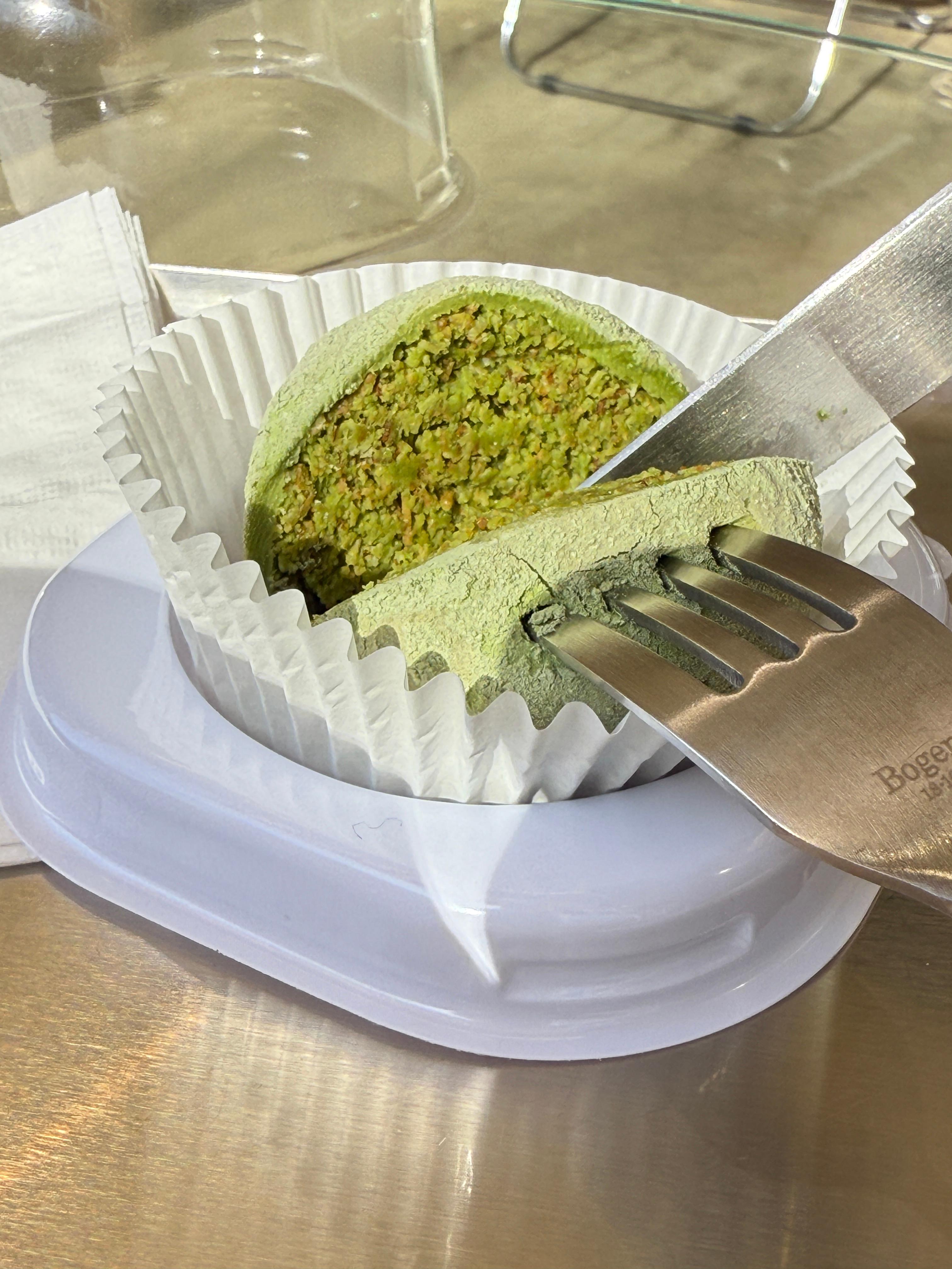 말차의 쌉싸래한 맛과 두쫀쿠 특유의 쫀득한 식감이 환상의 조합이었어요. 달지 않으면서도 고소한 맛이 입안 가득 퍼지는데, 한 입 베어 물면 말차 크림이 톡 터지면서 풍미가 배가됩니다.