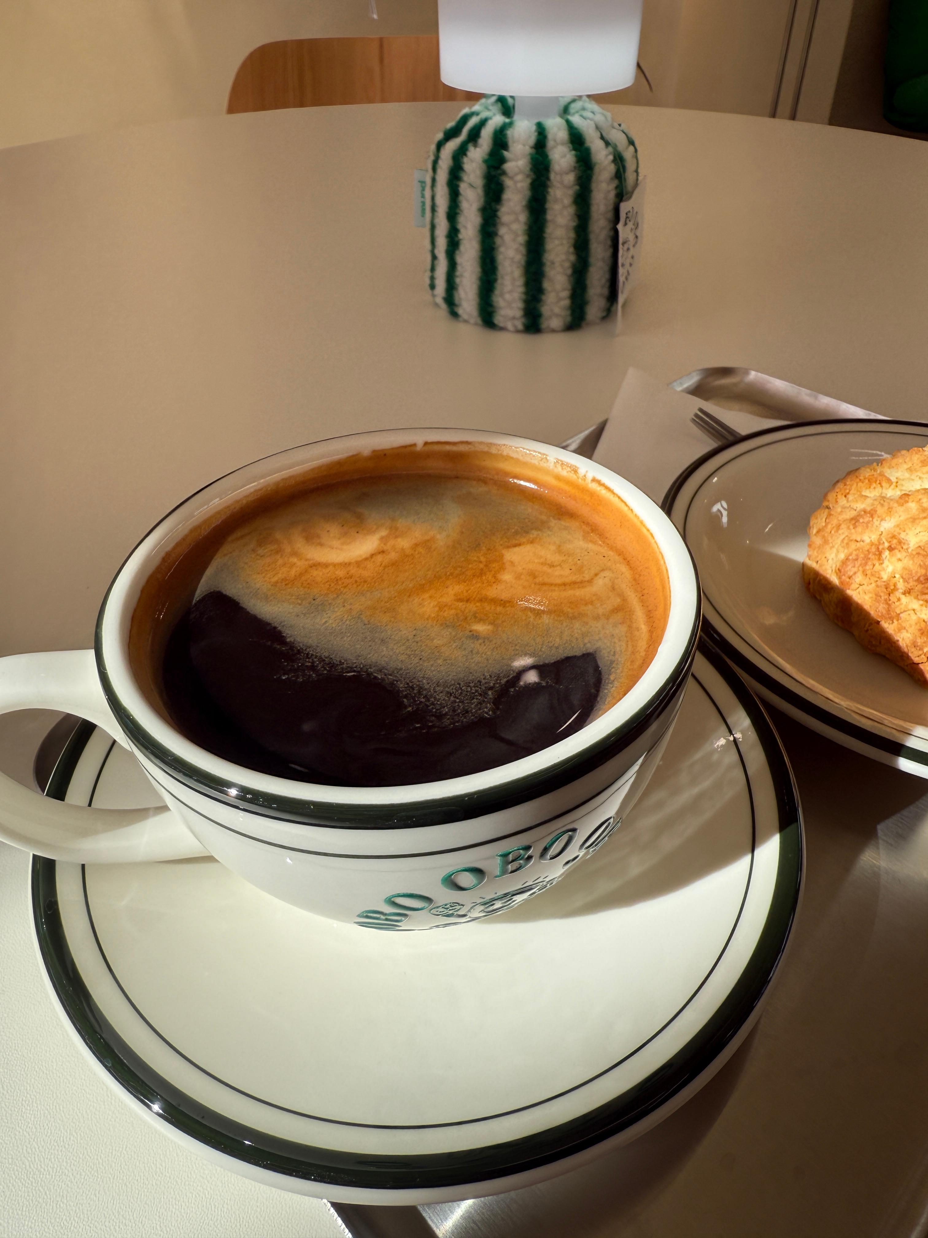오후의 나른함을 깨워줄 진한 아메리카노. 산미와 쓴맛의 밸런스가 적당해서 부담 없이 즐기기 좋았어요. 원두 향이 은은하게 퍼지면서 카페에서만 느낄 수 있는 그 특별한 분위기를 만들어주더라고요.